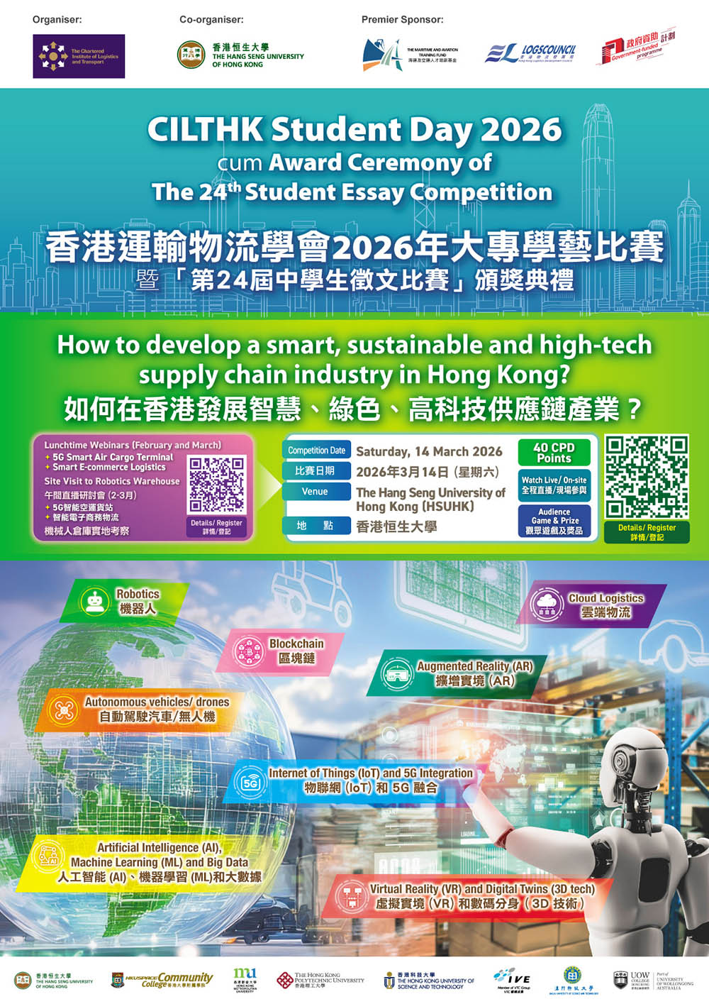 Join us for the CILTHK Student Day 2026 and see how our young generation interpret about cutting-edge logistics technologies, new customer expectations, and a growing focus on sustainability are transforming Hong Kong’s e-commerce and high-value logistics landscape.